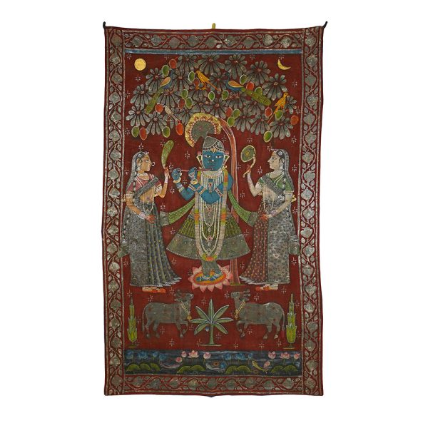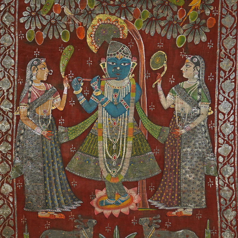 In Nathdwara, Rajasthan, and other Pushtimarg places, they are Textiles hanging behind the idol of Shrinathji, a seven-year-old infant version of Krishna. They set the tone (bhava) for festivals or events on the Vallabhacharya Sampradaya or sect’s liturgical calendar by serving as both a theatrical backdrop and a religious image.