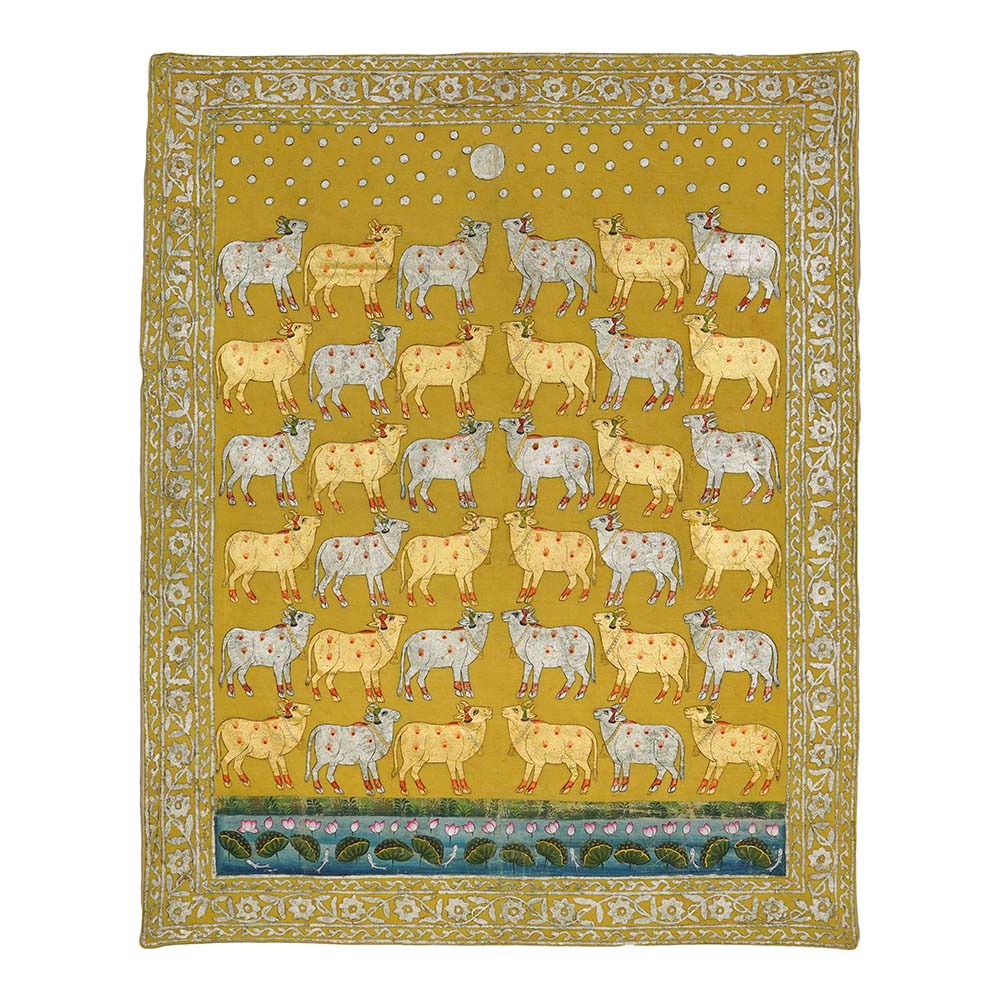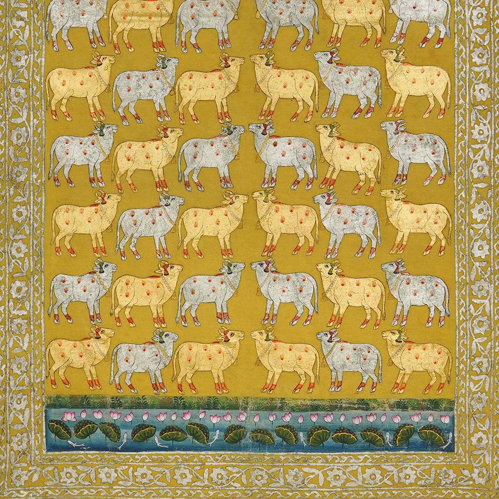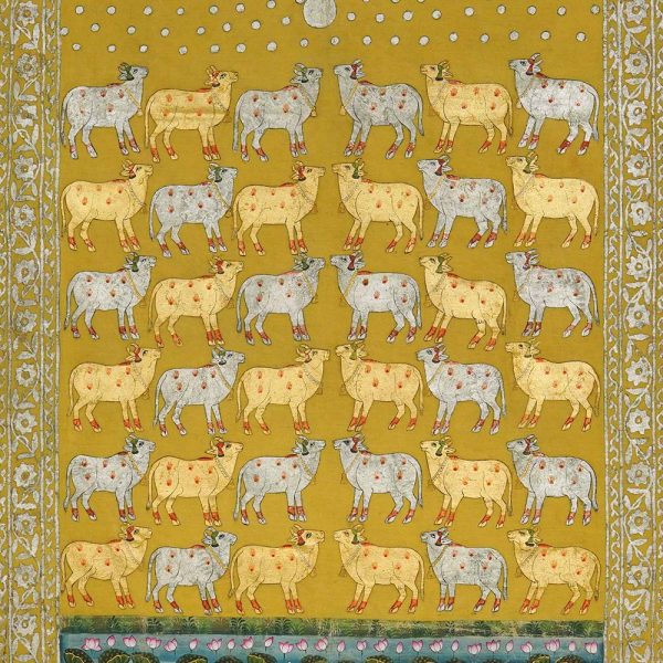 In Nathdwara, Rajasthan, and other Pushtimarg places, they are Textiles hanging behind the idol of Shrinathji, a seven-year-old infant version of Krishna. They set the tone (bhava) for festivals or events on the Vallabhacharya Sampradaya or sect’s liturgical calendar by serving as both a theatrical backdrop and a religious image.