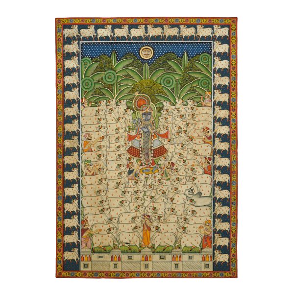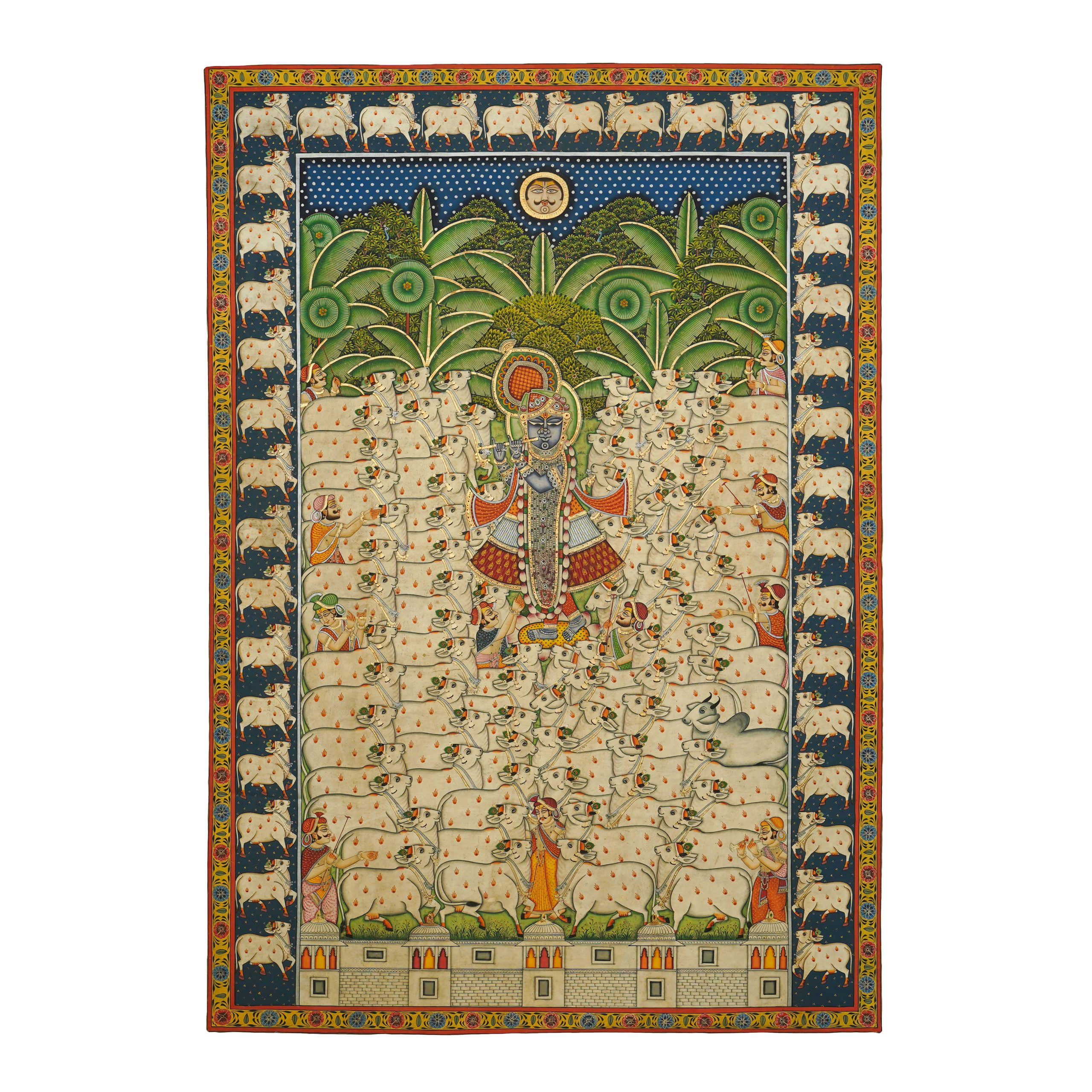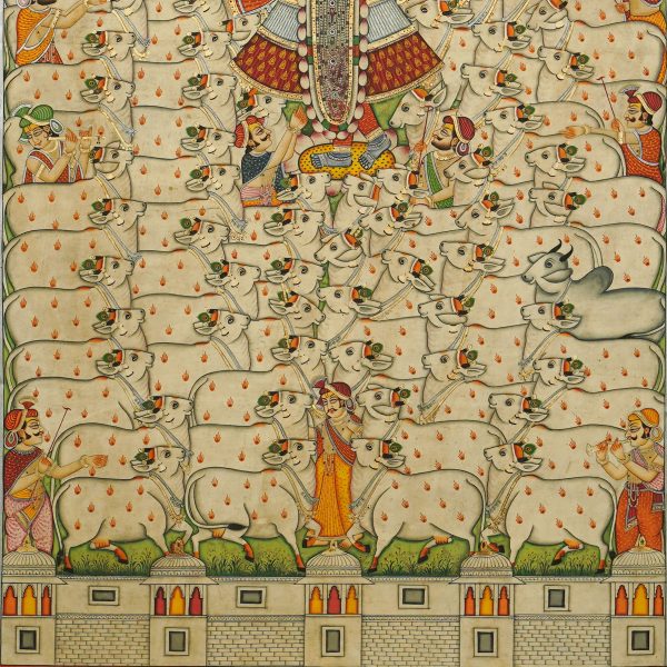 In Nathdwara, Rajasthan, and other Pushtimarg places, they are Textiles hanging behind the idol of Shrinathji, a seven-year-old infant version of Krishna. They set the tone (bhava) for festivals or events on the Vallabhacharya Sampradaya or sect’s liturgical calendar by serving as both a theatrical backdrop and a religious image.