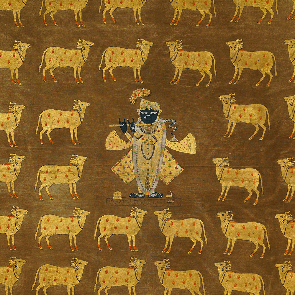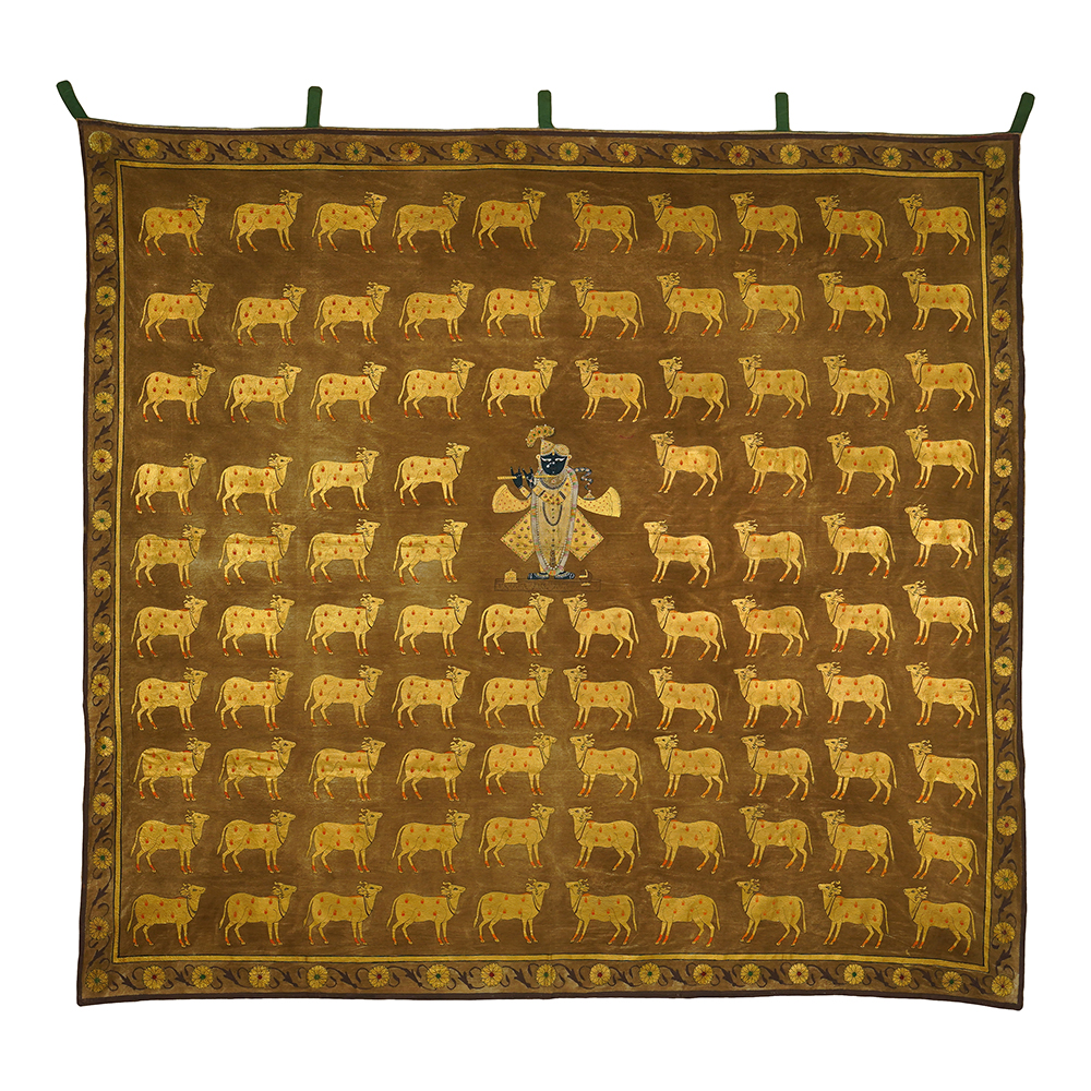 In Nathdwara, Rajasthan, and other Pushtimarg places, they are Textiles hanging behind the idol of Shrinathji, a seven-year-old infant version of Krishna. They set the tone (bhava) for festivals or events on the Vallabhacharya Sampradaya or sect’s liturgical calendar by serving as both a theatrical backdrop and a religious image.