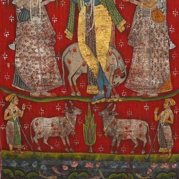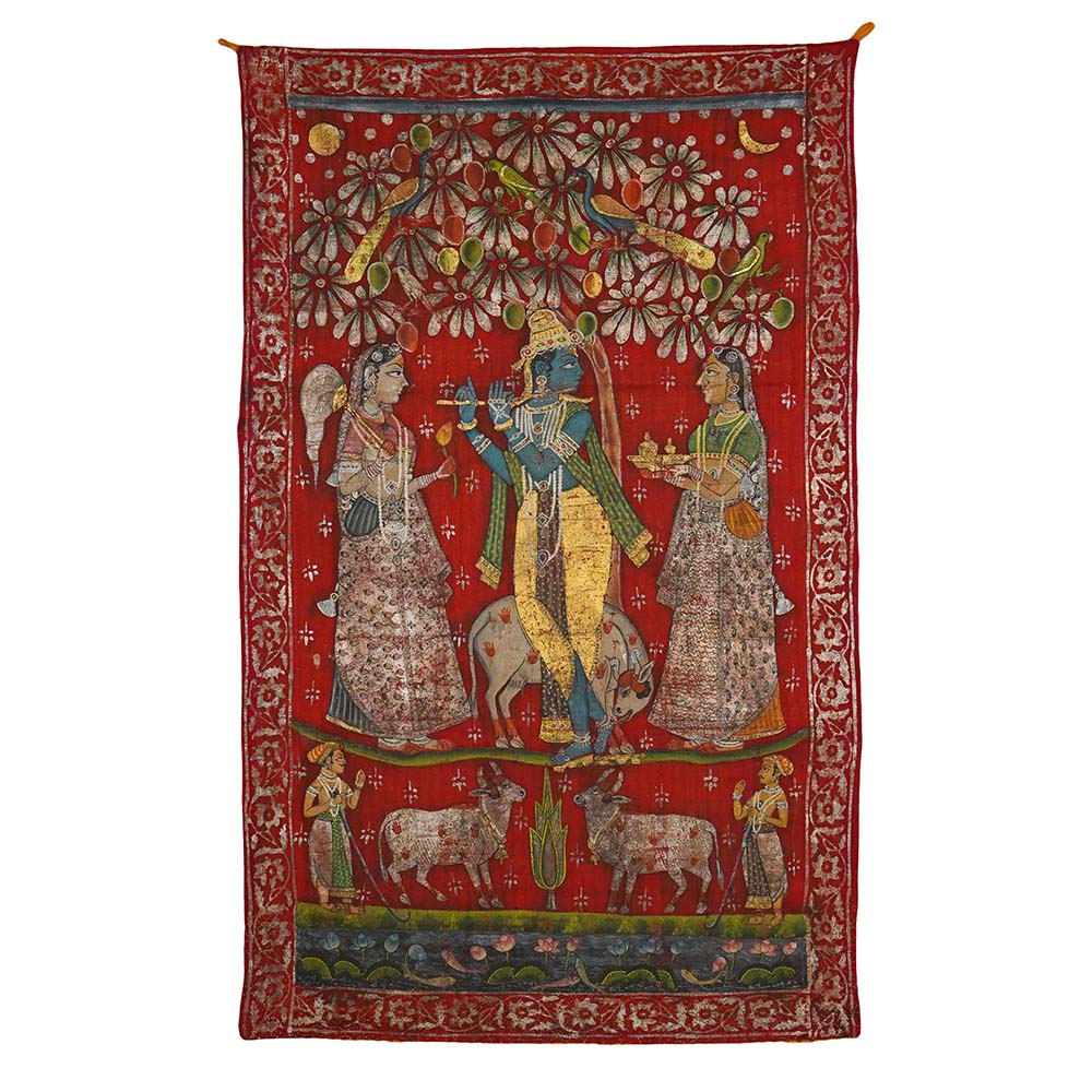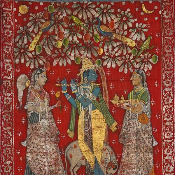 In Nathdwara, Rajasthan, and other Pushtimarg places, they are Textiles hanging behind the idol of Shrinathji, a seven-year-old infant version of Krishna. They set the tone (bhava) for festivals or events on the Vallabhacharya Sampradaya or sect’s liturgical calendar by serving as both a theatrical backdrop and a religious image.