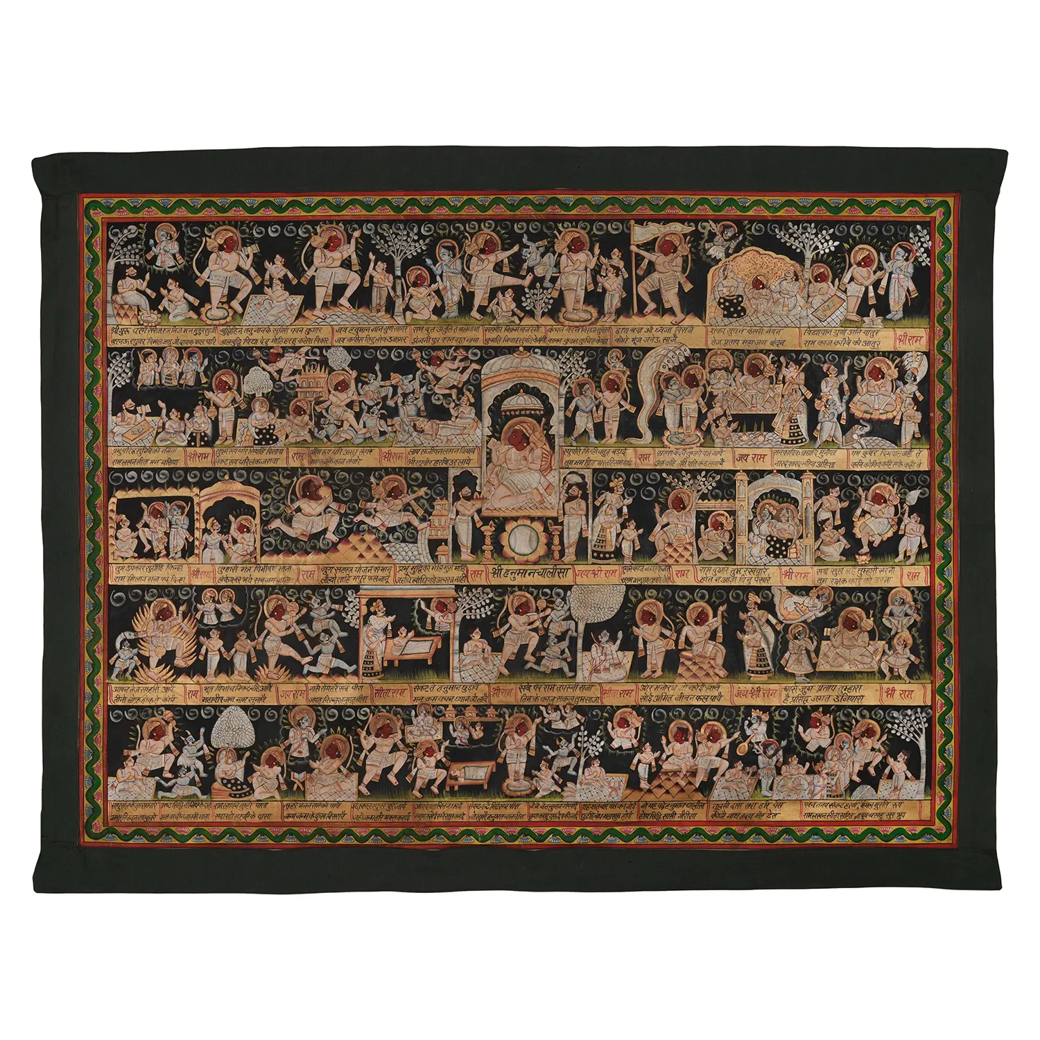 In Nathdwara, Rajasthan, and other Pushtimarg places, they are Textiles hanging behind the idol of Shrinathji, a seven-year-old infant version of Krishna. They set the tone (bhava) for festivals or events on the Vallabhacharya Sampradaya or sect’s liturgical calendar by serving as both a theatrical backdrop and a religious image.