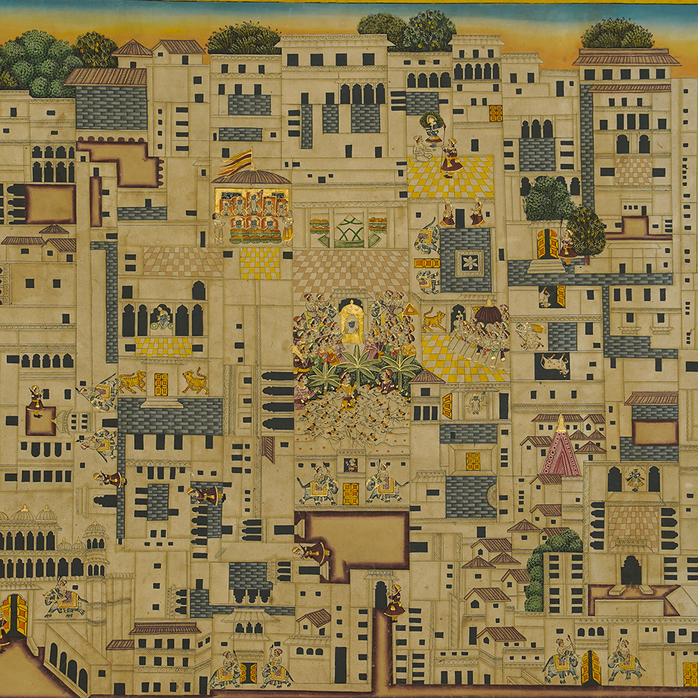 In Nathdwara, Rajasthan, and other Pushtimarg places, they are Textiles hanging behind the idol of Shrinathji, a seven-year-old infant version of Krishna. They set the tone (bhava) for festivals or events on the Vallabhacharya Sampradaya or sect’s liturgical calendar by serving as both a theatrical backdrop and a religious image.