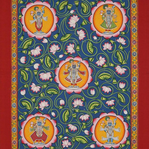 In Nathdwara, Rajasthan, and other Pushtimarg places, they are Textiles hanging behind the idol of Shrinathji, a seven-year-old infant version of Krishna. They set the tone (bhava) for festivals or events on the Vallabhacharya Sampradaya or sect’s liturgical calendar by serving as both a theatrical backdrop and a religious image.