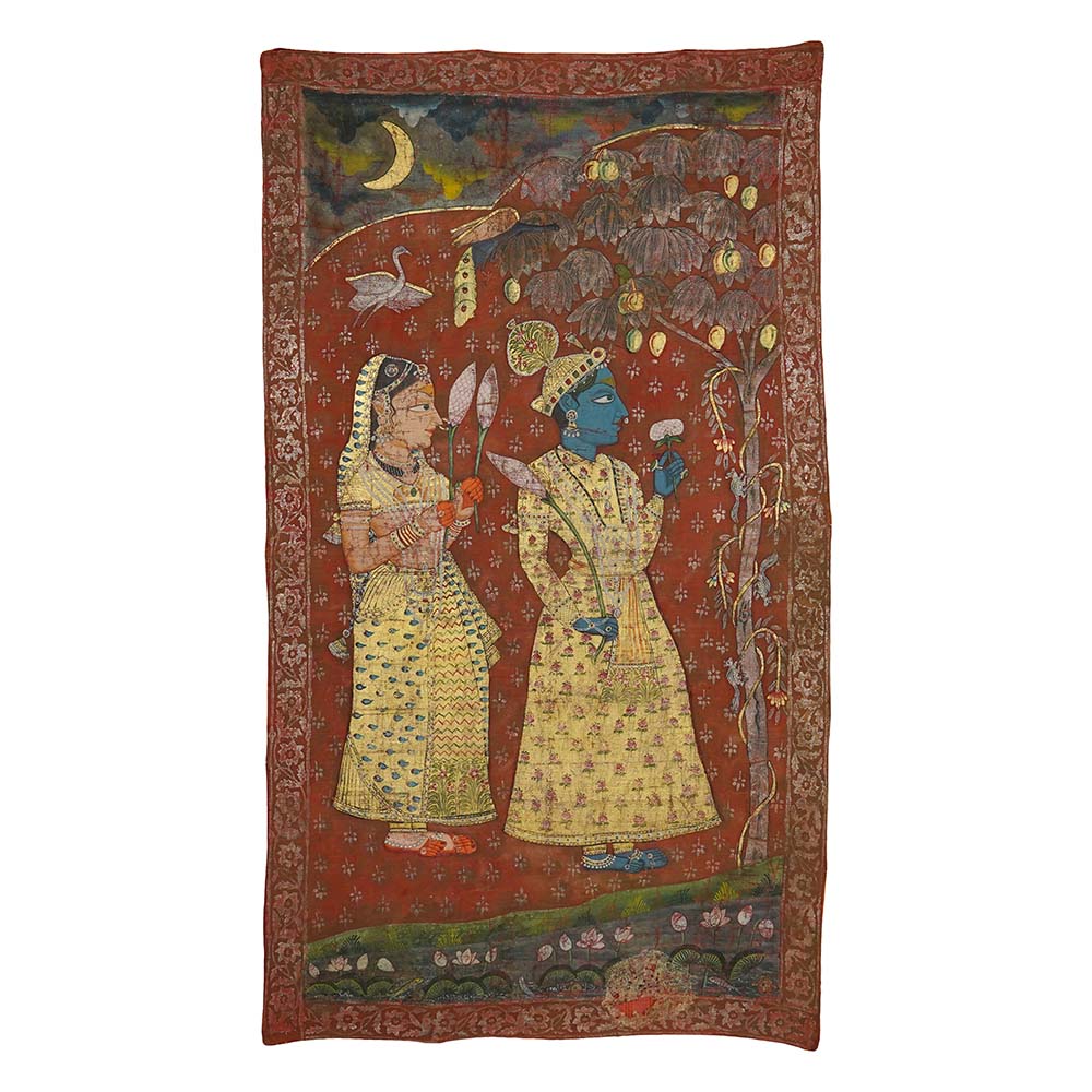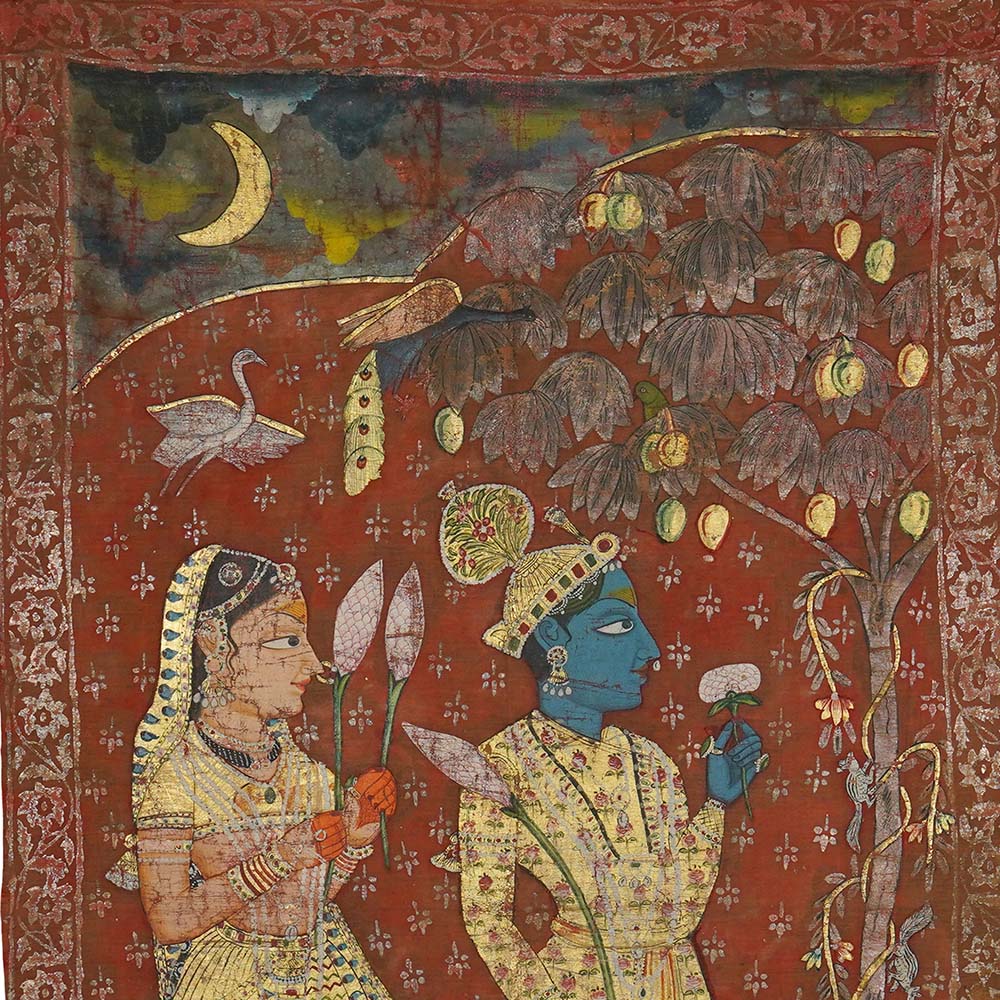 In Nathdwara, Rajasthan, and other Pushtimarg places, they are Textiles hanging behind the idol of Shrinathji, a seven-year-old infant version of Krishna. They set the tone (bhava) for festivals or events on the Vallabhacharya Sampradaya or sect’s liturgical calendar by serving as both a theatrical backdrop and a religious image.