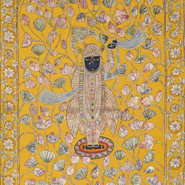 In Nathdwara, Rajasthan, and other Pushtimarg places, they are Textiles hanging behind the idol of Shrinathji, a seven-year-old infant version of Krishna. They set the tone (bhava) for festivals or events on the Vallabhacharya Sampradaya or sect’s liturgical calendar by serving as both a theatrical backdrop and a religious image.