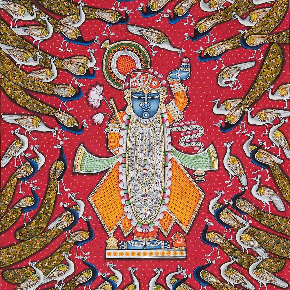 In Nathdwara, Rajasthan, and other Pushtimarg places, they are Textiles hanging behind the idol of Shrinathji, a seven-year-old infant version of Krishna. They set the tone (bhava) for festivals or events on the Vallabhacharya Sampradaya or sect’s liturgical calendar by serving as both a theatrical backdrop and a religious image.