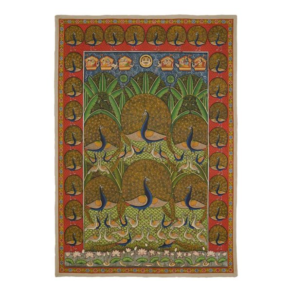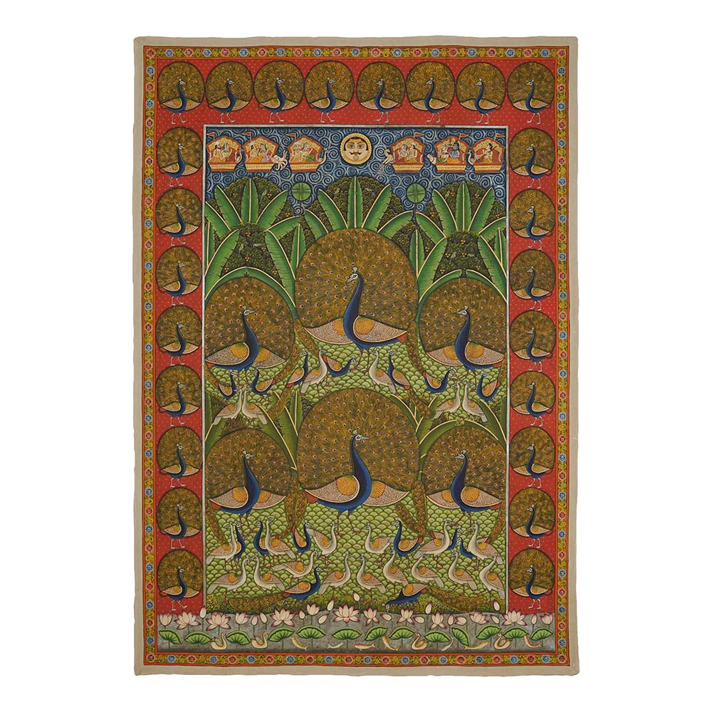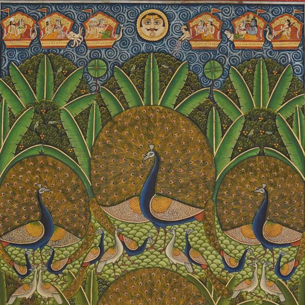 In Nathdwara, Rajasthan, and other Pushtimarg places, they are Textiles hanging behind the idol of Shrinathji, a seven-year-old infant version of Krishna. They set the tone (bhava) for festivals or events on the Vallabhacharya Sampradaya or sect’s liturgical calendar by serving as both a theatrical backdrop and a religious image.