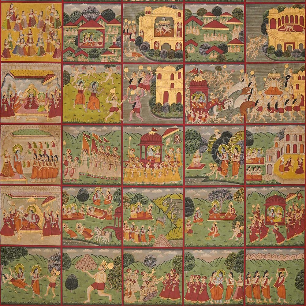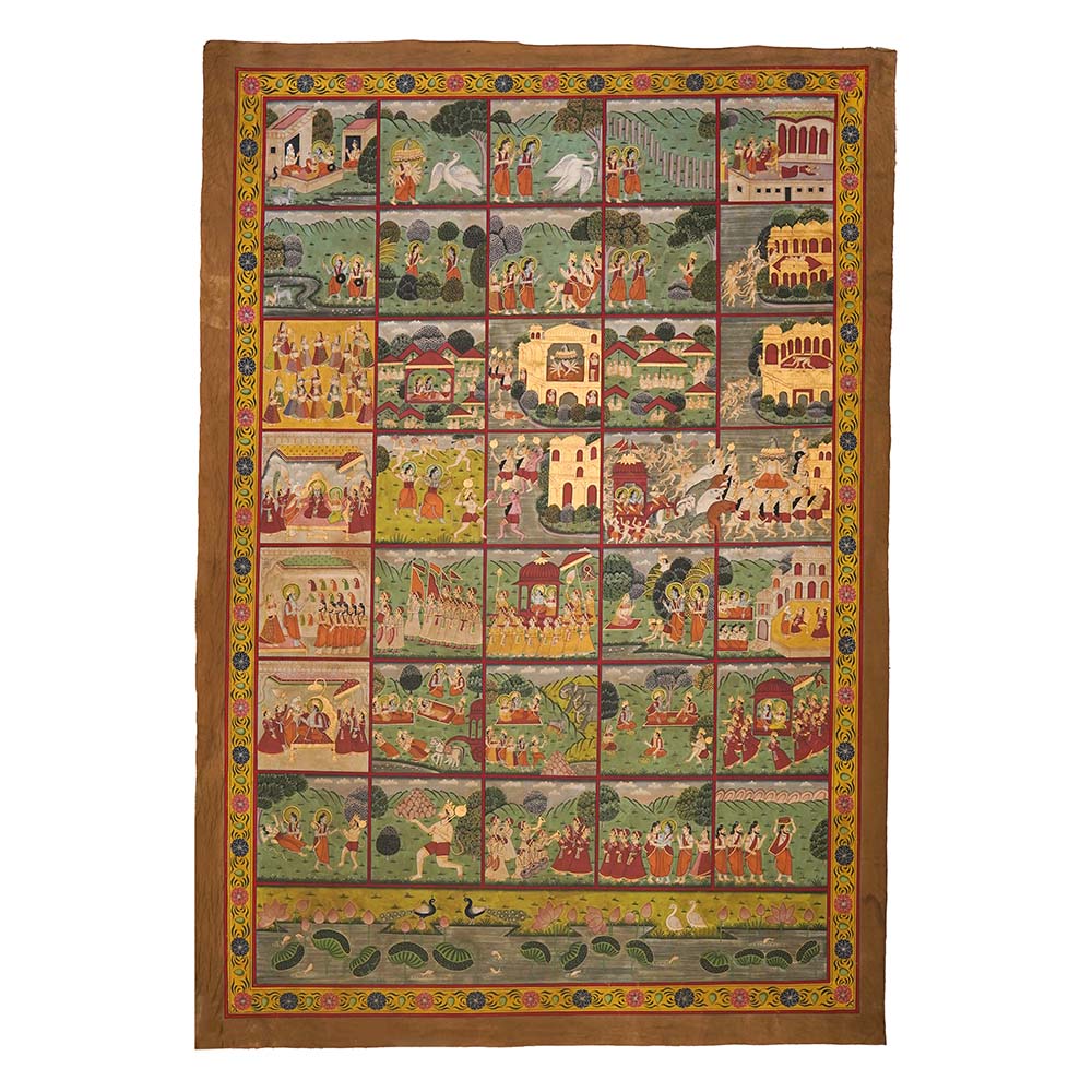 In Nathdwara, Rajasthan, and other Pushtimarg places, they are Textiles hanging behind the idol of Shrinathji, a seven-year-old infant version of Krishna. They set the tone (bhava) for festivals or events on the Vallabhacharya Sampradaya or sect’s liturgical calendar by serving as both a theatrical backdrop and a religious image.
