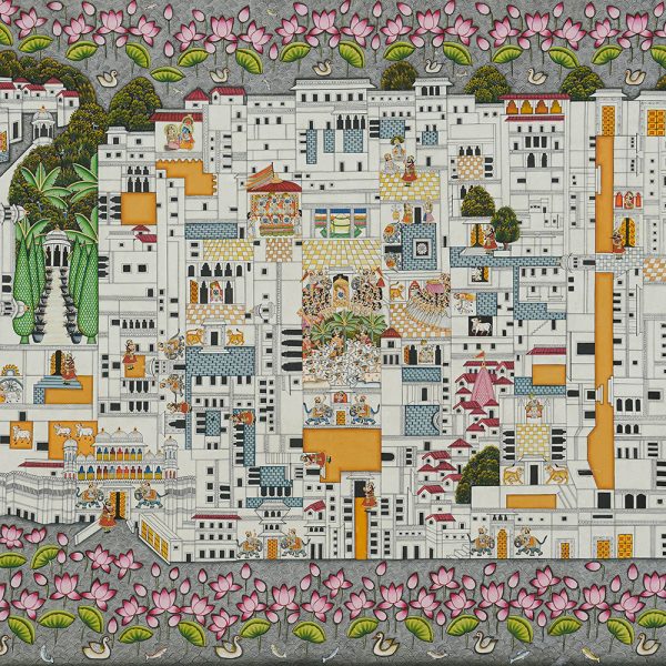 In Nathdwara, Rajasthan, and other Pushtimarg places, they are Textiles hanging behind the idol of Shrinathji, a seven-year-old infant version of Krishna. They set the tone (bhava) for festivals or events on the Vallabhacharya Sampradaya or sect’s liturgical calendar by serving as both a theatrical backdrop and a religious image.