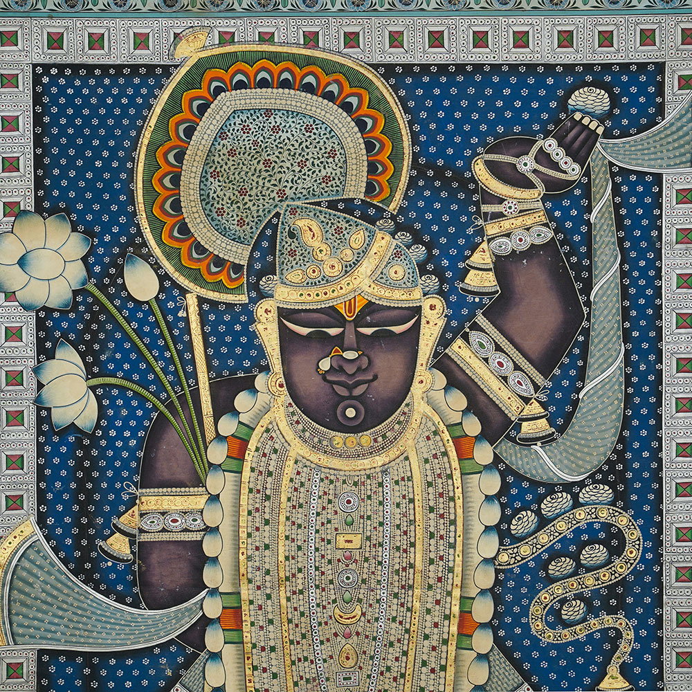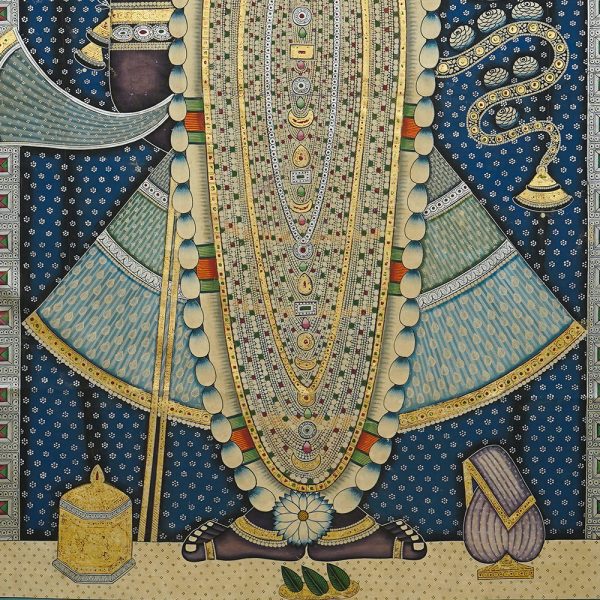 In Nathdwara, Rajasthan, and other Pushtimarg places, they are Textiles hanging behind the idol of Shrinathji, a seven-year-old infant version of Krishna. They set the tone (bhava) for festivals or events on the Vallabhacharya Sampradaya or sect’s liturgical calendar by serving as both a theatrical backdrop and a religious image.