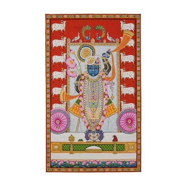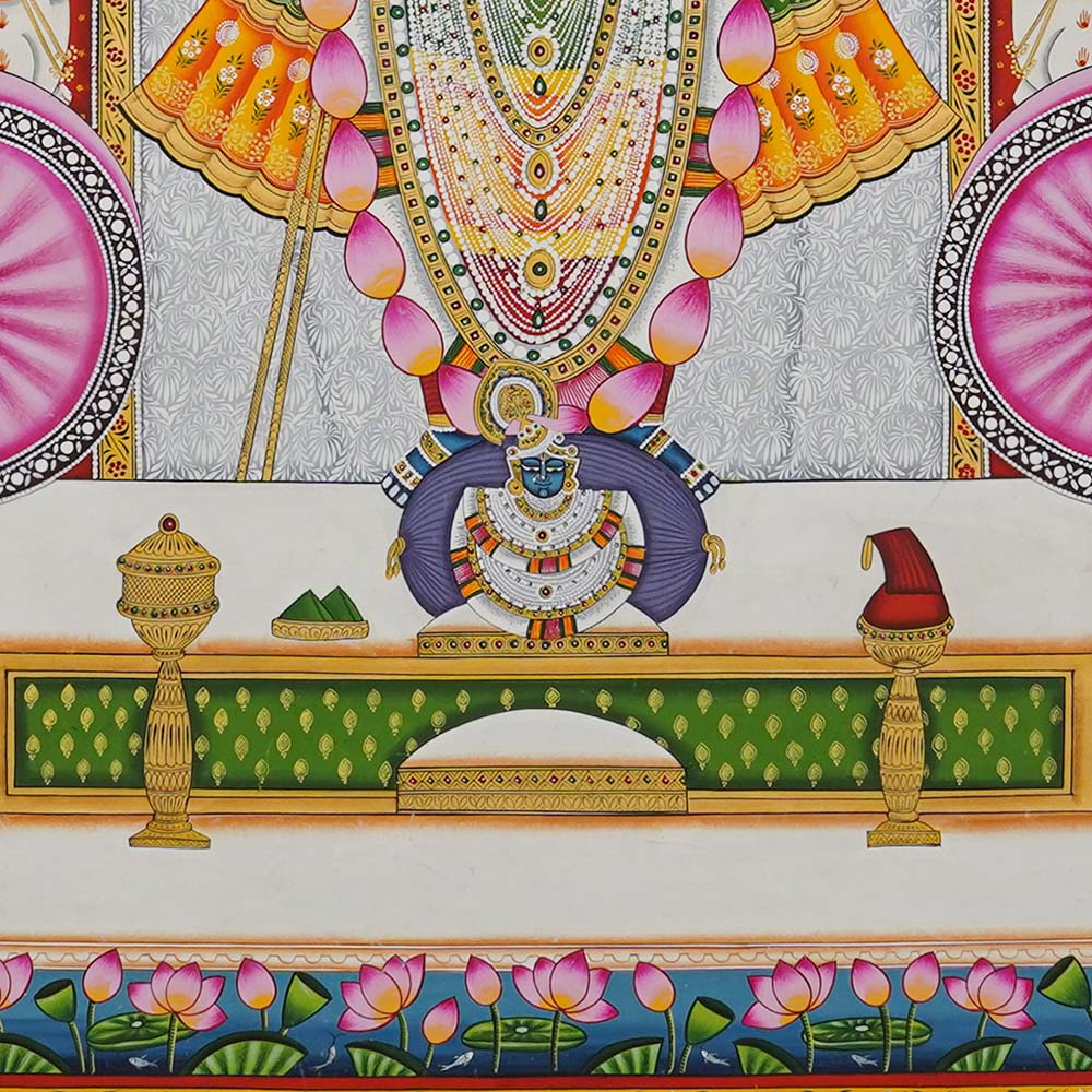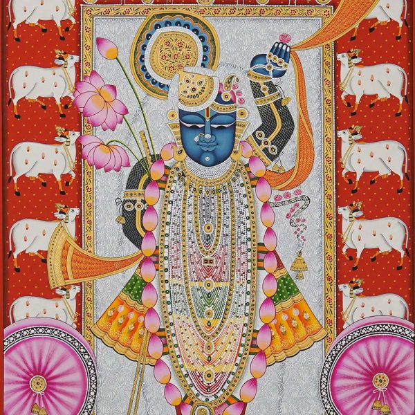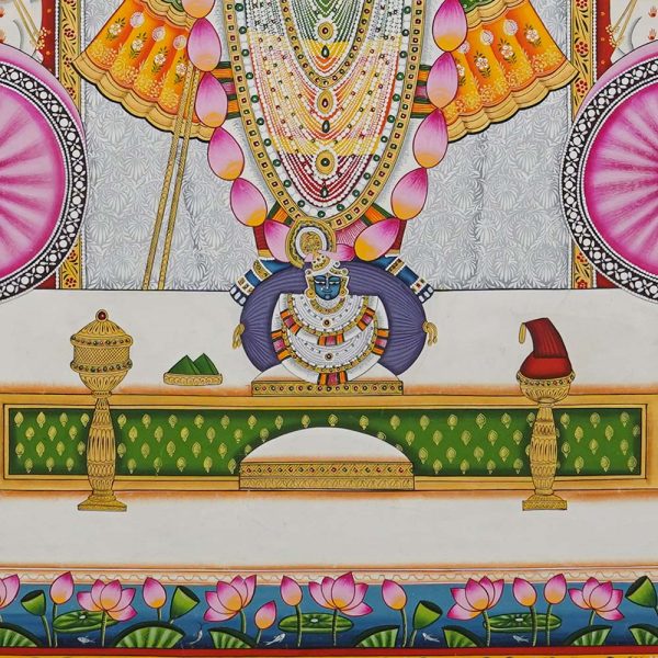 In Nathdwara, Rajasthan, and other Pushtimarg places, they are Textiles hanging behind the idol of Shrinathji, a seven-year-old infant version of Krishna. They set the tone (bhava) for festivals or events on the Vallabhacharya Sampradaya or sect’s liturgical calendar by serving as both a theatrical backdrop and a religious image.